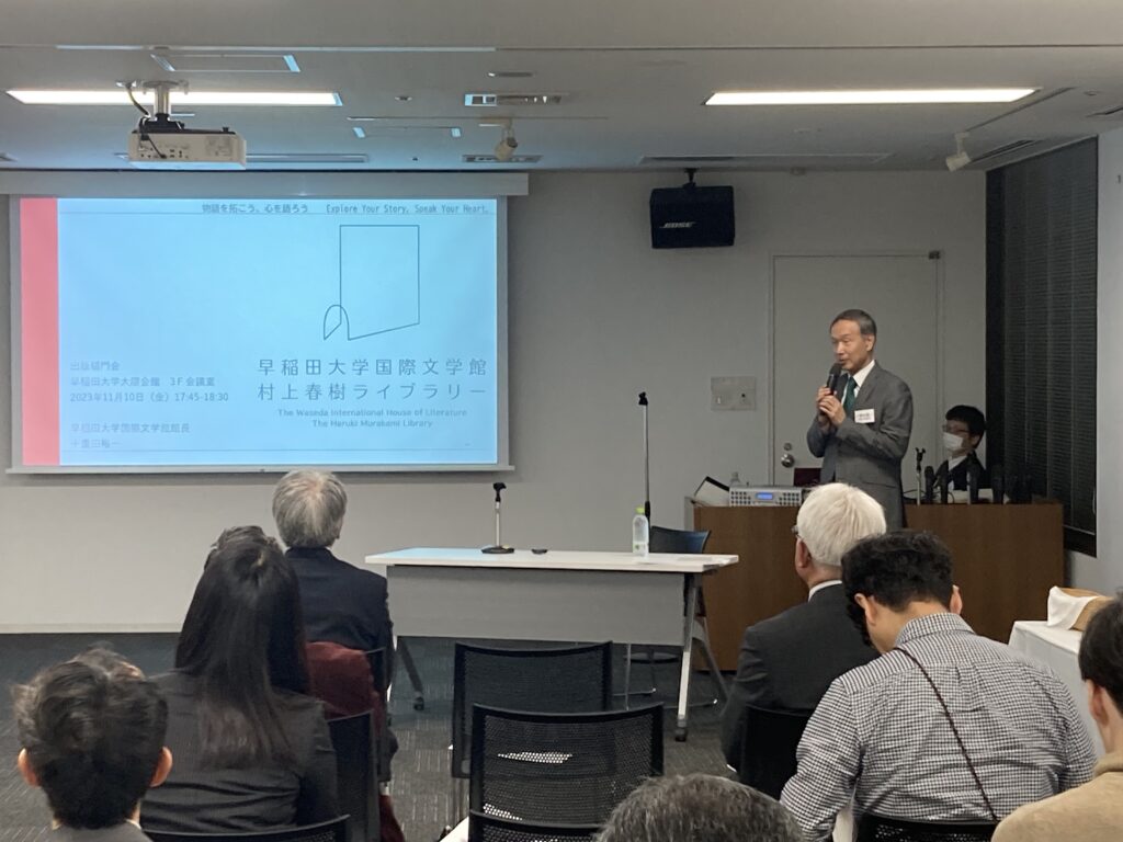 まず総会に先立ち会員希望者を対象に国際文学館(村上春樹ライブラリー)見学ツアーが企画されました。通常入れないスペースもまわることができ、また村上春樹氏の書斎をほぼ再現した部屋など春樹氏の世界にいささかでも触れることができ、参加者はみな満足していました。